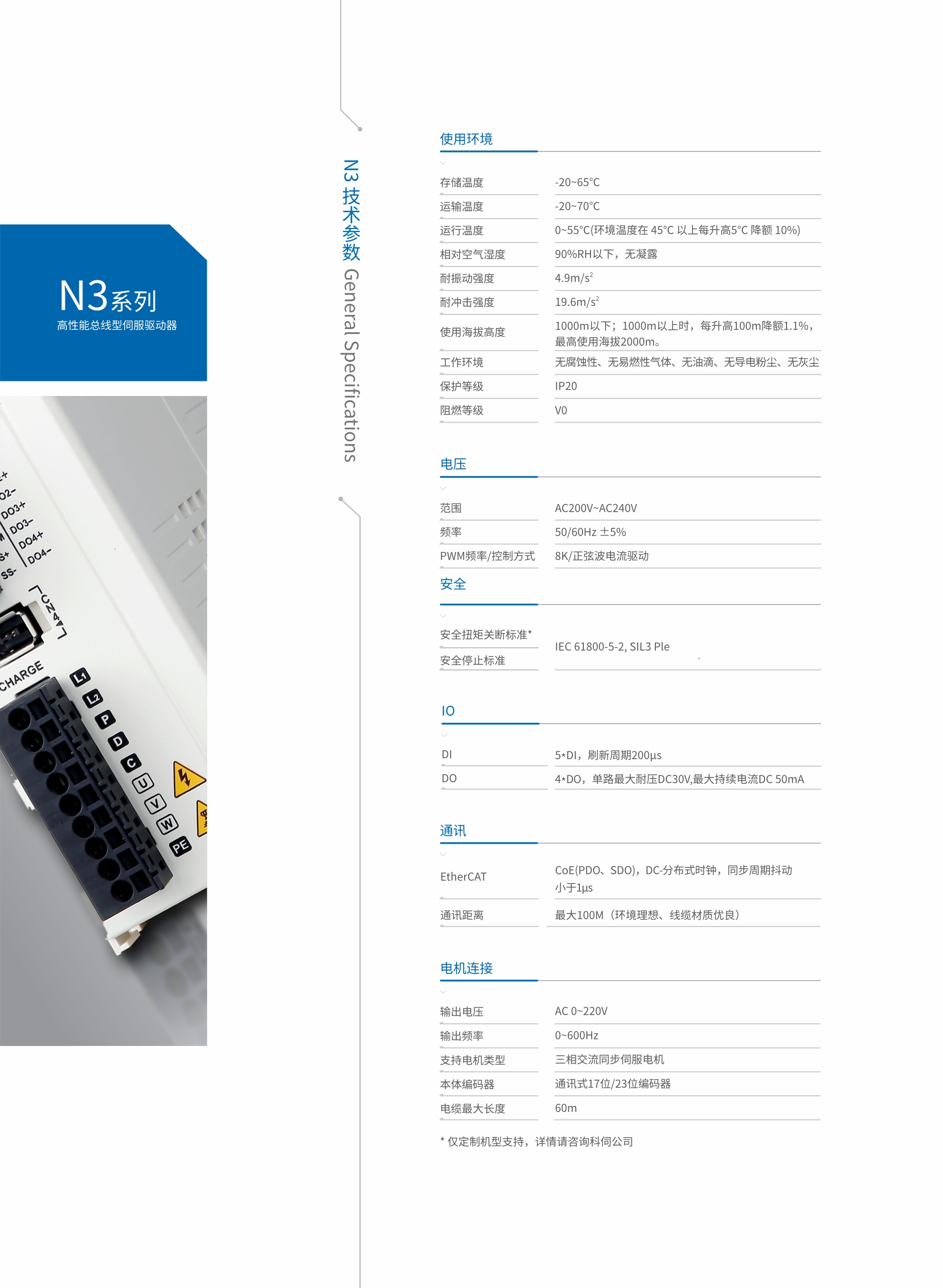 全系列內置了STO及動態(tài)制動功能,支持EtherCAT通訊協(xié)議,高速實時與上位機進行通訊。